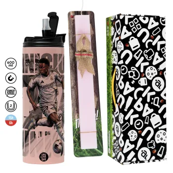 Vinícius Júnior (Βινίσιους Ζούνιορ), Easter candle, Travel Tumbler 600ml Double Wall & aromatic flat candle (30cm) (PINK)