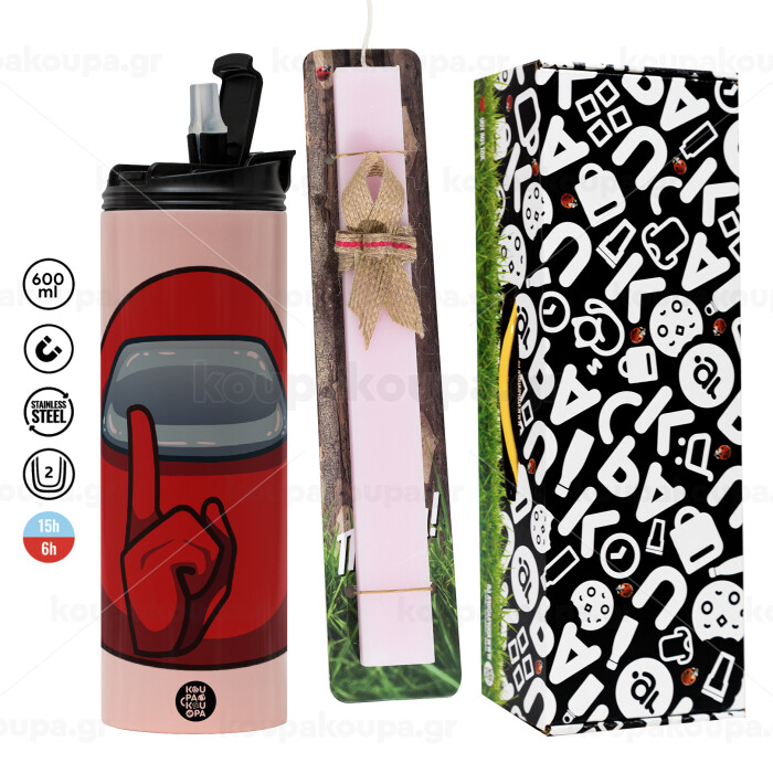 Among US, Easter candle,Travel Tumbler 2 Lids, with metal straw & cleaning brush & aromatic flat candle (30cm) (PINK)
