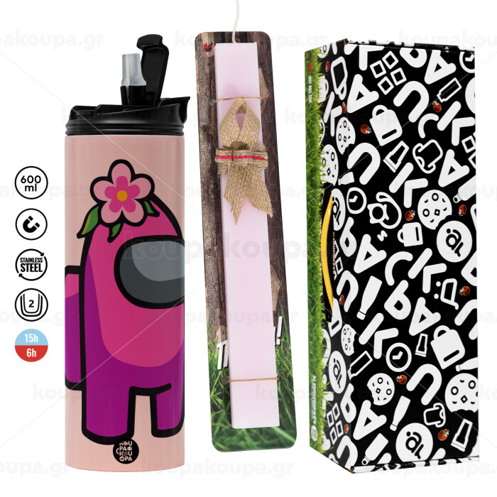 Among US girl, Easter candle,Travel Tumbler 2 Lids, with metal straw & cleaning brush & aromatic flat candle (30cm) (PINK)