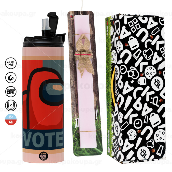 Among US VOTE, Easter candle,Travel Tumbler 2 Lids, with metal straw & cleaning brush & aromatic flat candle (30cm) (PINK)