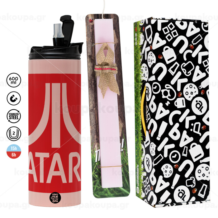 atari, Easter candle,Travel Tumbler 2 Lids, with metal straw & cleaning brush & aromatic flat candle (30cm) (PINK)