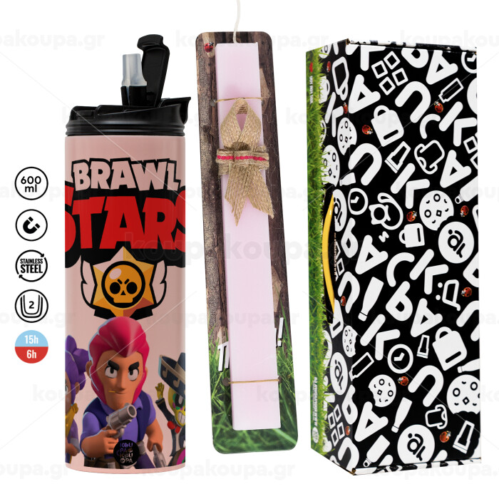 Brawl Stars Blue, Easter candle,Travel Tumbler 2 Lids, with metal straw & cleaning brush & aromatic flat candle (30cm) (PINK)