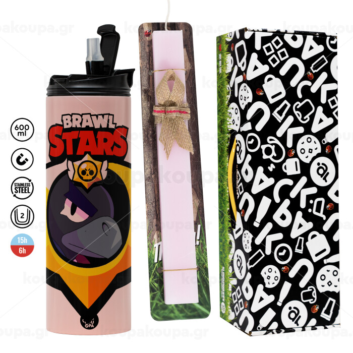 Brawl Stars Crow, Easter candle,Travel Tumbler 2 Lids, with metal straw & cleaning brush & aromatic flat candle (30cm) (PINK)