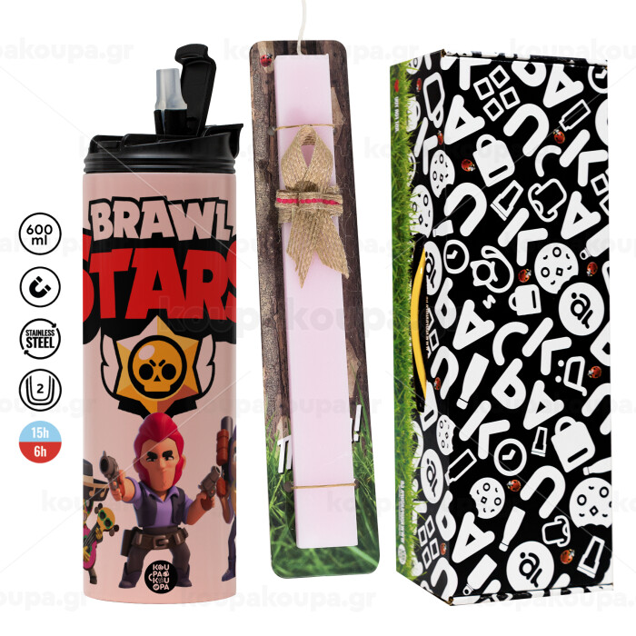 Brawl Stars Desert, Easter candle,Travel Tumbler 2 Lids, with metal straw & cleaning brush & aromatic flat candle (30cm) (PINK)