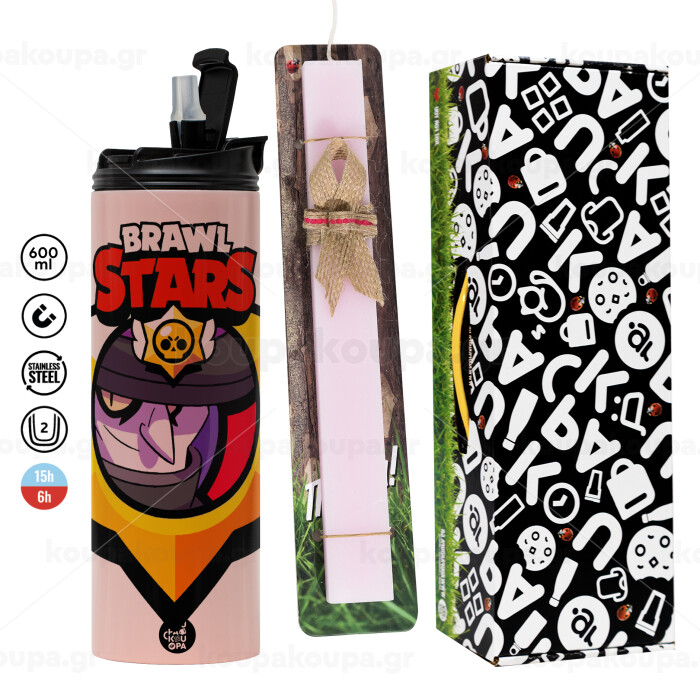 Brawl Stars Mortis, Easter candle,Travel Tumbler 2 Lids, with metal straw & cleaning brush & aromatic flat candle (30cm) (PINK)