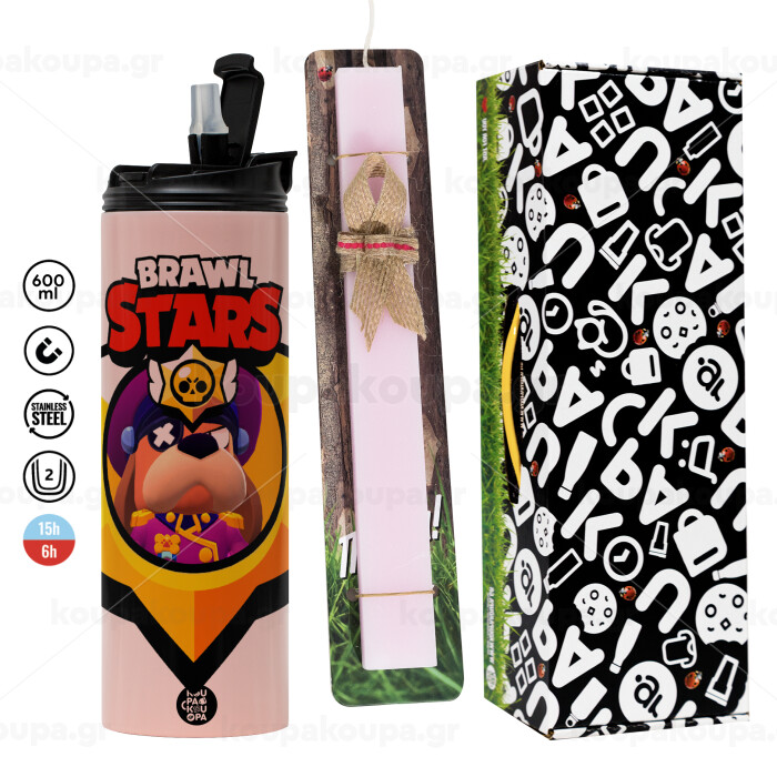 Brawl Stars Ruffs, Easter candle,Travel Tumbler 2 Lids, with metal straw & cleaning brush & aromatic flat candle (30cm) (PINK)