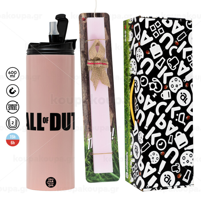 Call of Duty, Easter candle,Travel Tumbler 2 Lids, with metal straw & cleaning brush & aromatic flat candle (30cm) (PINK)