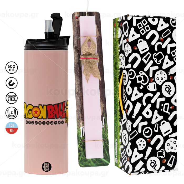 DragonBallZ, Easter candle,Travel Tumbler 2 Lids, with metal straw & cleaning brush & aromatic flat candle (30cm) (PINK)