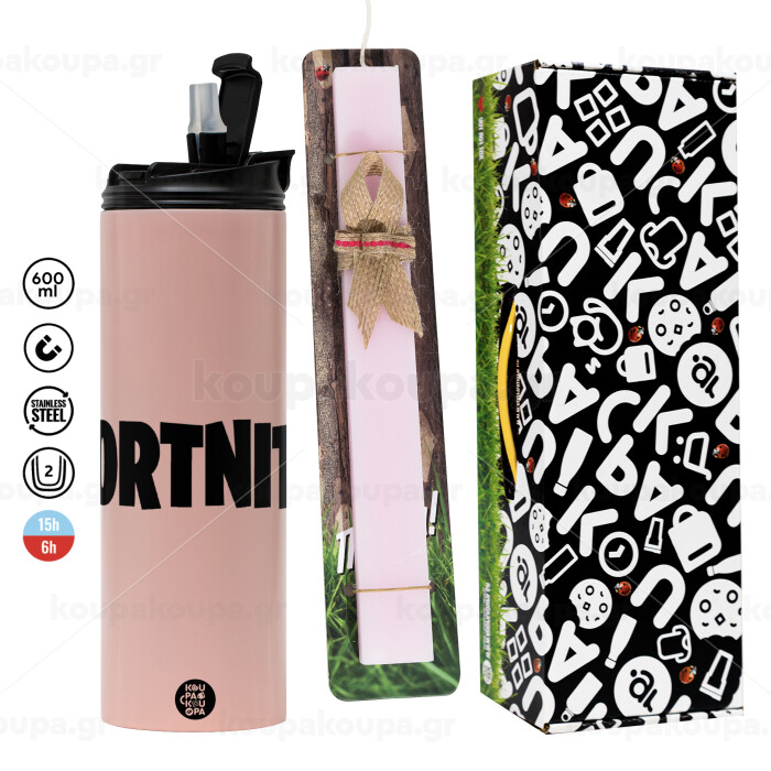 Fortnite landscape, Easter candle,Travel Tumbler 2 Lids, with metal straw & cleaning brush & aromatic flat candle (30cm) (PINK)