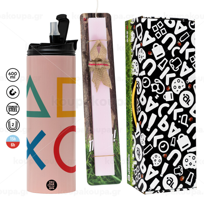 Gaming Symbols, Easter candle, Travel Tumbler 600ml Double Wall & aromatic flat candle (30cm) (PINK)