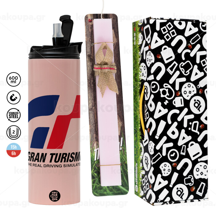 gran turismo, Easter candle,Travel Tumbler 2 Lids, with metal straw & cleaning brush & aromatic flat candle (30cm) (PINK)
