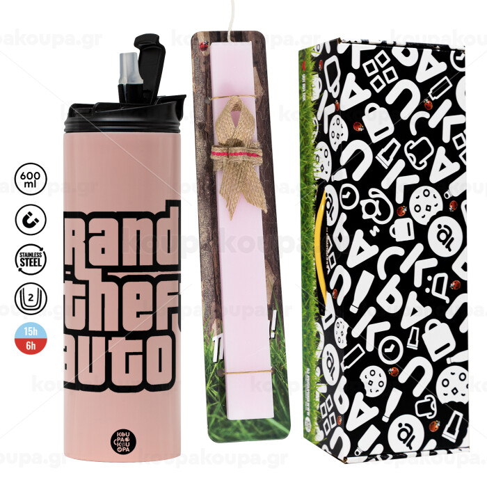 GTA (grand theft auto), Easter candle,Travel Tumbler 2 Lids, with metal straw & cleaning brush & aromatic flat candle (30cm) (PINK)