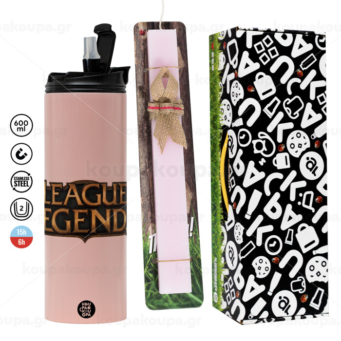 League of Legends LoL, Easter candle,Travel Tumbler 2 Lids, with metal straw & cleaning brush & aromatic flat candle (30cm) (PINK)