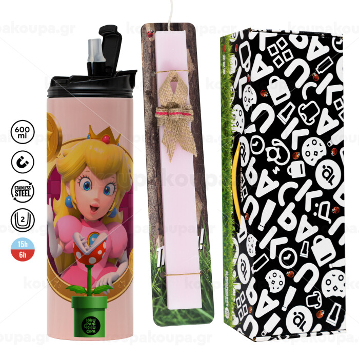 Princess Peach Toadstool, Easter candle,Travel Tumbler 2 Lids, with metal straw & cleaning brush & aromatic flat candle (30cm) (PINK)