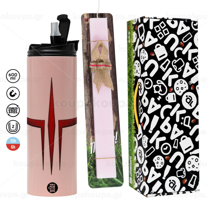 Quake 3 arena, Easter candle,Travel Tumbler 2 Lids, with metal straw & cleaning brush & aromatic flat candle (30cm) (PINK)