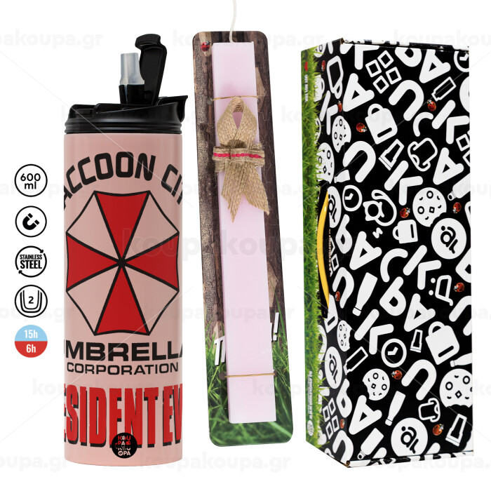 Resident Evil, Easter candle,Travel Tumbler 2 Lids, with metal straw & cleaning brush & aromatic flat candle (30cm) (PINK)