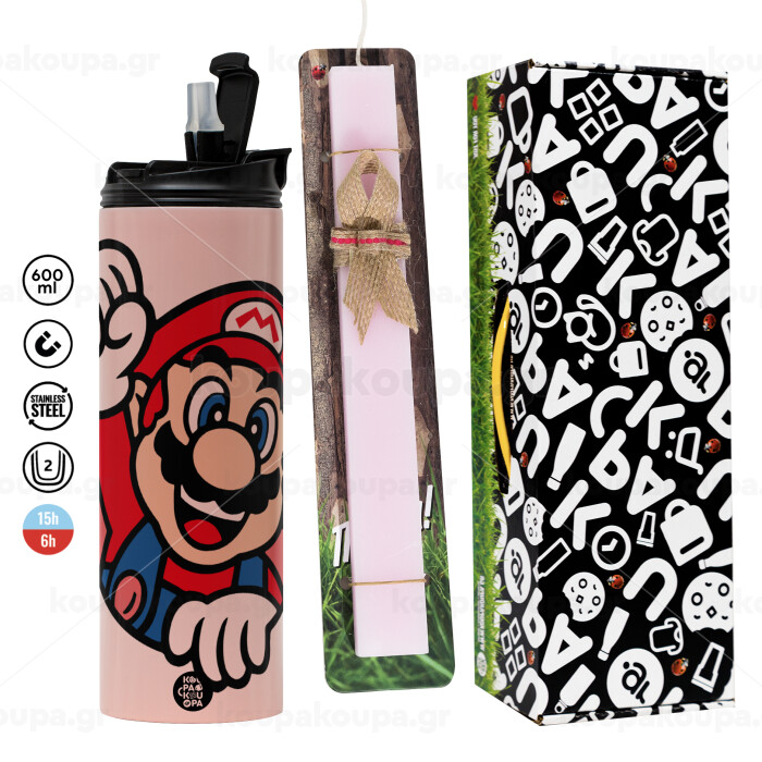 Super mario win, Easter candle,Travel Tumbler 2 Lids, with metal straw & cleaning brush & aromatic flat candle (30cm) (PINK)