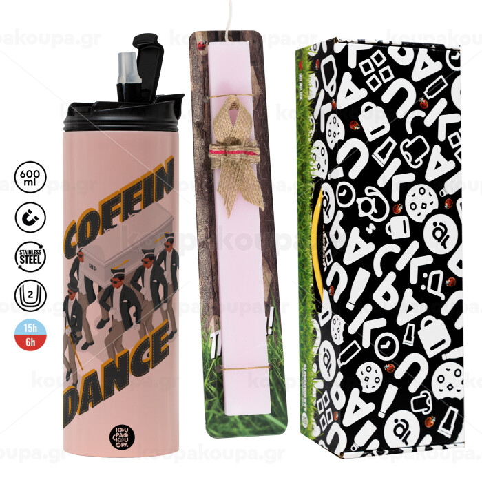 Coffin Dance!, Easter candle,Travel Tumbler 2 Lids, with metal straw & cleaning brush & aromatic flat candle (30cm) (PINK)