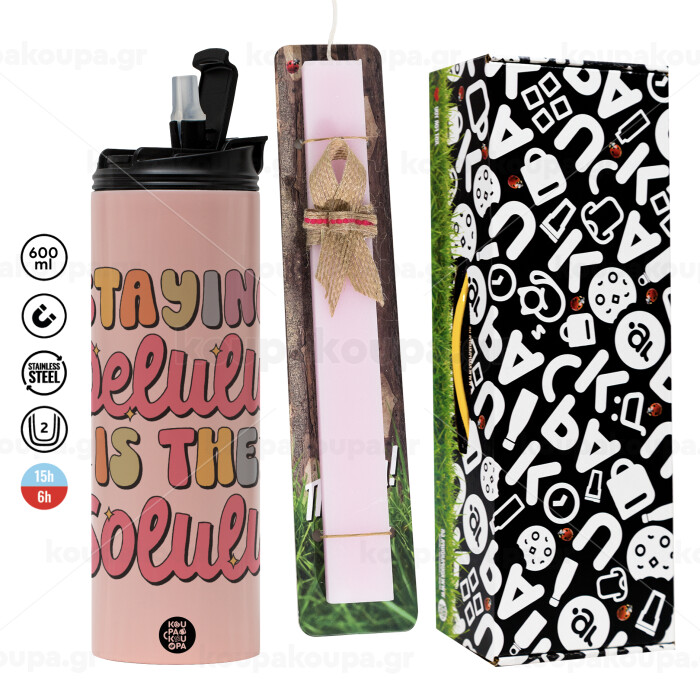 Delulu, Easter candle,Travel Tumbler 2 Lids, with metal straw & cleaning brush & aromatic flat candle (30cm) (PINK)