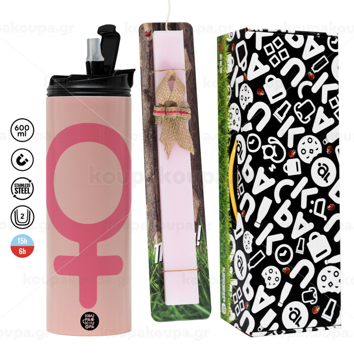 FEMALE, Easter candle,Travel Tumbler 2 Lids, with metal straw & cleaning brush & aromatic flat candle (30cm) (PINK)