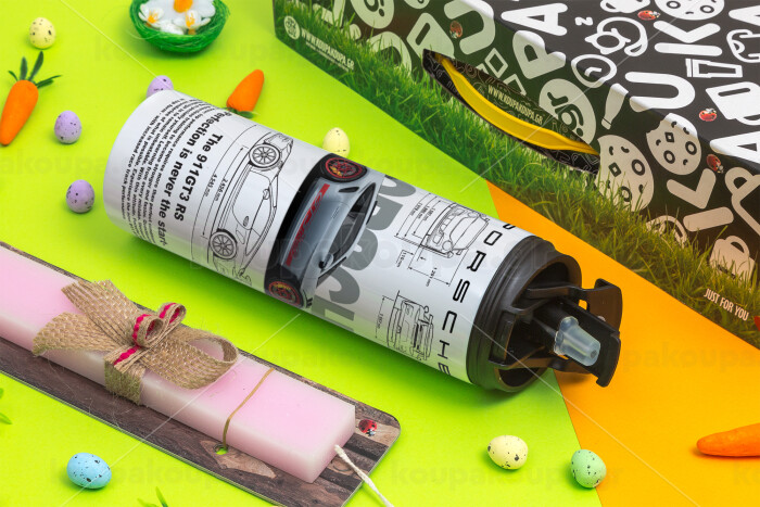 Porsche, Easter candle,Travel Tumbler 2 Lids, with metal straw & cleaning brush & aromatic flat candle (30cm) (PINK)