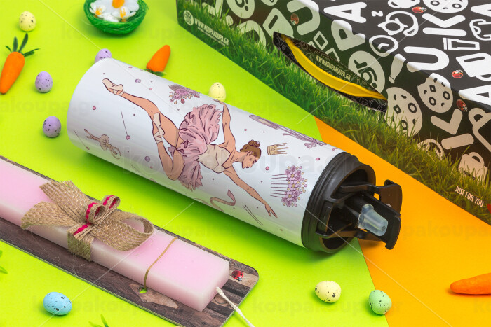 Ballet Dancer, Easter candle,Travel Tumbler 2 Lids, with metal straw & cleaning brush & aromatic flat candle (30cm) (PINK)