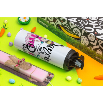 Dancing is my Passion, Easter candle,Travel Tumbler 2 Lids, with metal straw & cleaning brush & aromatic flat candle (30cm) (PINK)