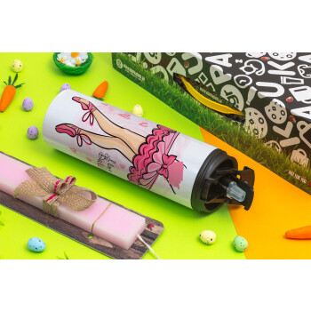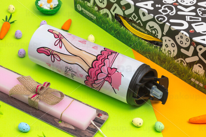 I Love Ballet, Easter candle,Travel Tumbler 2 Lids, with metal straw & cleaning brush & aromatic flat candle (30cm) (PINK)