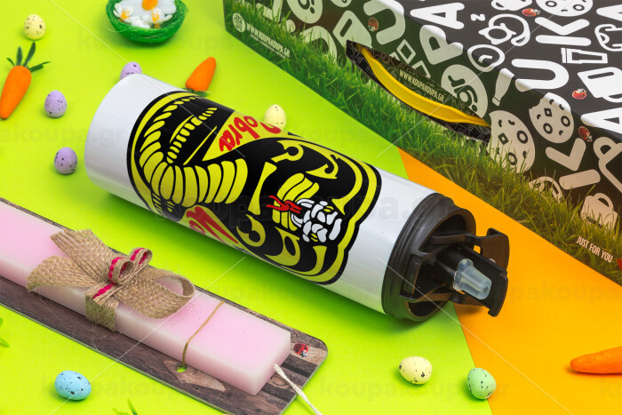 Cobra Kai Yellow, Easter candle,Travel Tumbler 2 Lids, with metal straw & cleaning brush & aromatic flat candle (30cm) (PINK)