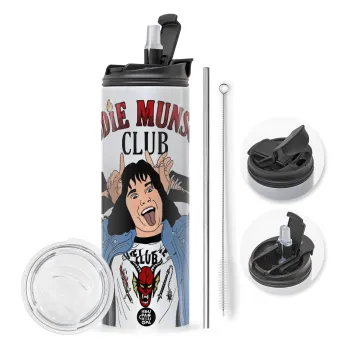 Eddie Munson, Easter candle,Travel Tumbler 2 Lids, with metal straw & cleaning brush & aromatic flat candle (30cm) (PINK)