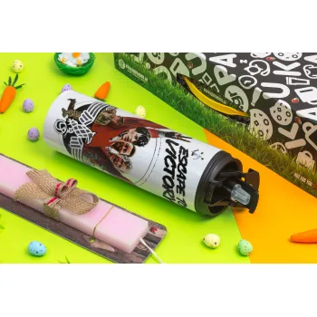 Escape to victory, Easter candle,Travel Tumbler 2 Lids, with metal straw & cleaning brush & aromatic flat candle (30cm) (PINK)