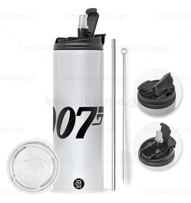 James Bond 007, Easter candle,Travel Tumbler 2 Lids, with metal straw & cleaning brush & aromatic flat candle (30cm) (PINK)