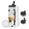 Eco friendly hot glass 600ml with metal reusable straw. Enjoy your favorite drink at any moment in this unique ecological thermos. It maintains the temperature for several hours and is made of stainless steel. Suitable for hot and cold drinks. Comes with a cleaning brush for the straw.