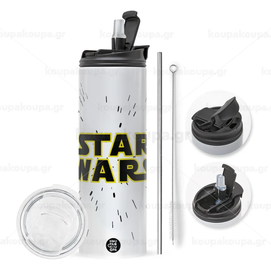 Star Wars, Easter candle,Travel Tumbler 2 Lids, with metal straw & cleaning brush & aromatic flat candle (30cm) (PINK)