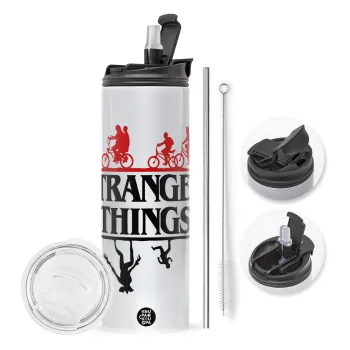 Stranger Things upside down, Easter candle,Travel Tumbler 2 Lids, with metal straw & cleaning brush & aromatic flat candle (30cm) (PINK)