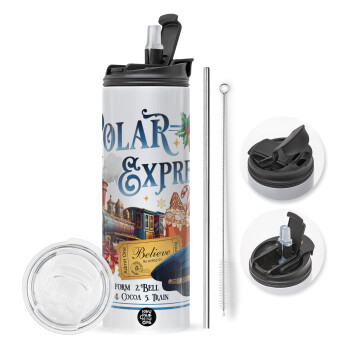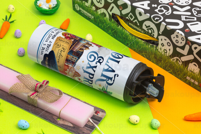 The Polar Express, Easter candle,Travel Tumbler 2 Lids, with metal straw & cleaning brush & aromatic flat candle (30cm) (PINK)