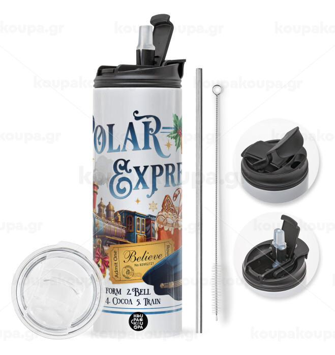 The Polar Express, Easter candle,Travel Tumbler 2 Lids, with metal straw & cleaning brush & aromatic flat candle (30cm) (PINK)