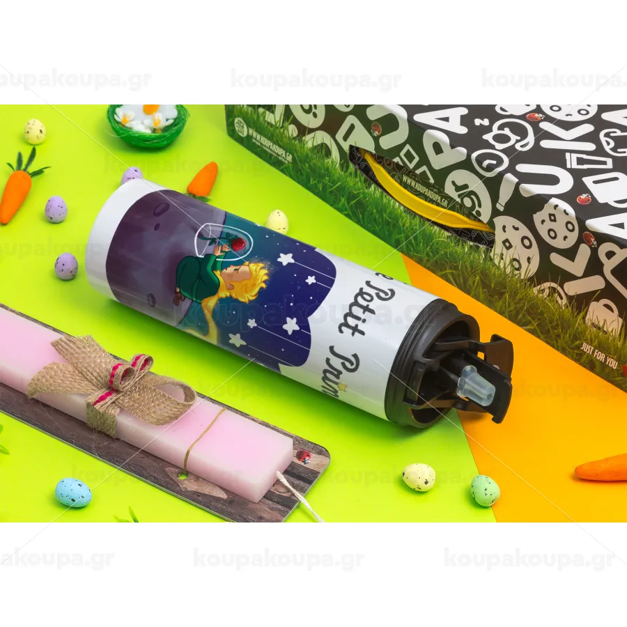 Little prince, Easter candle,Travel Tumbler 2 Lids, with metal straw & cleaning brush & aromatic flat candle (30cm) (PINK)