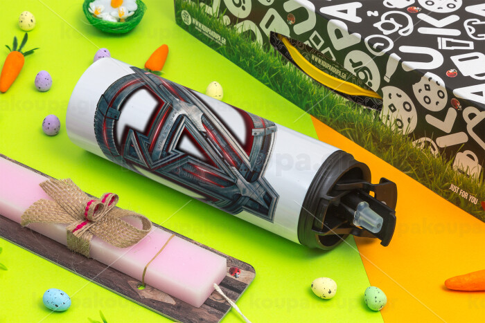 Avengers, Easter candle,Travel Tumbler 2 Lids, with metal straw & cleaning brush & aromatic flat candle (30cm) (PINK)