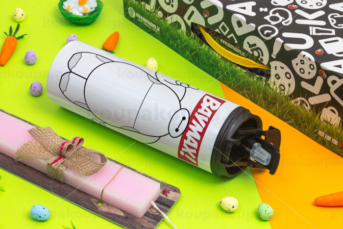 Baymax hi, Easter candle,Travel Tumbler 2 Lids, with metal straw & cleaning brush & aromatic flat candle (30cm) (PINK)