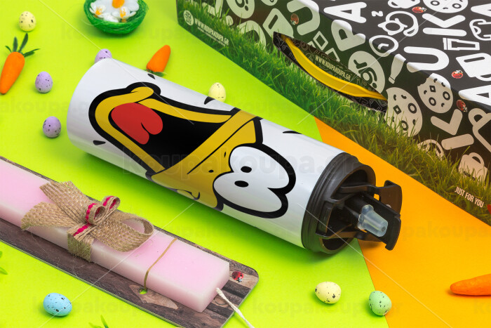 Daffy Duck, Easter candle,Travel Tumbler 2 Lids, with metal straw & cleaning brush & aromatic flat candle (30cm) (PINK)
