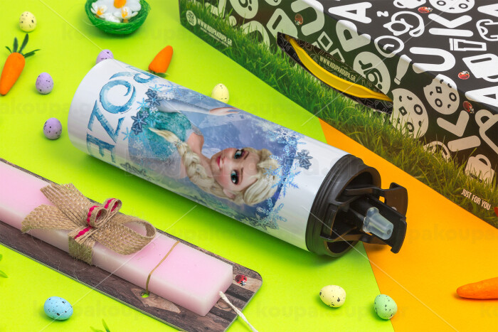 Frozen Elsa, Easter candle,Travel Tumbler 2 Lids, with metal straw & cleaning brush & aromatic flat candle (30cm) (PINK)