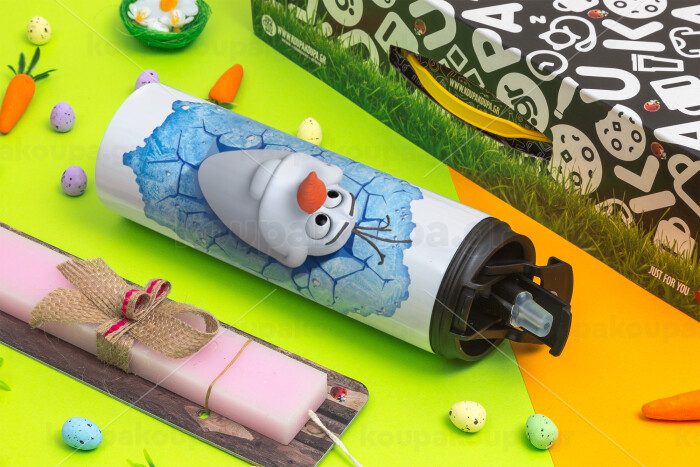 Frozen Olaf, Easter candle,Travel Tumbler 2 Lids, with metal straw & cleaning brush & aromatic flat candle (30cm) (PINK)