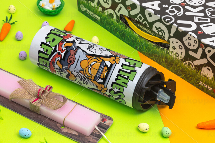 Garfield Fitness, Easter candle,Travel Tumbler 2 Lids, with metal straw & cleaning brush & aromatic flat candle (30cm) (PINK)
