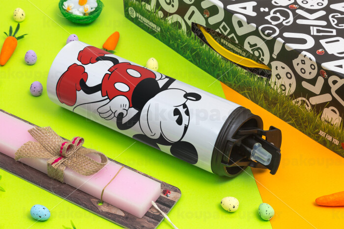 Mickey Classic, Easter candle,Travel Tumbler 2 Lids, with metal straw & cleaning brush & aromatic flat candle (30cm) (PINK)