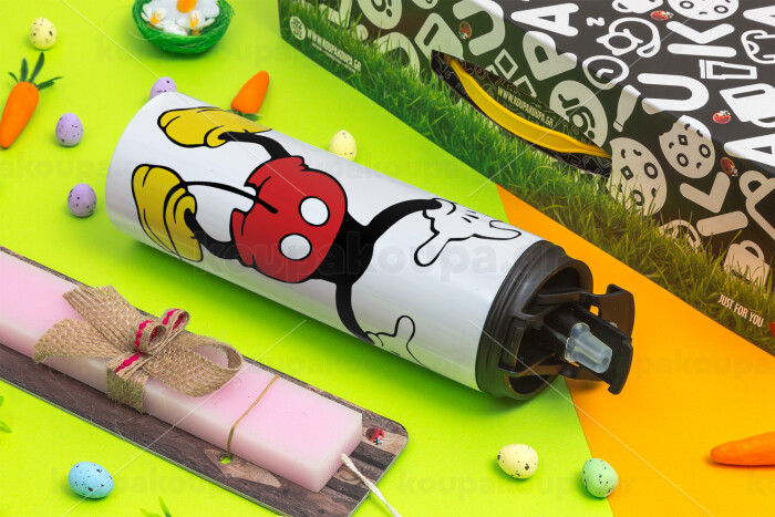 Mickey hide..., Easter candle,Travel Tumbler 2 Lids, with metal straw & cleaning brush & aromatic flat candle (30cm) (PINK)