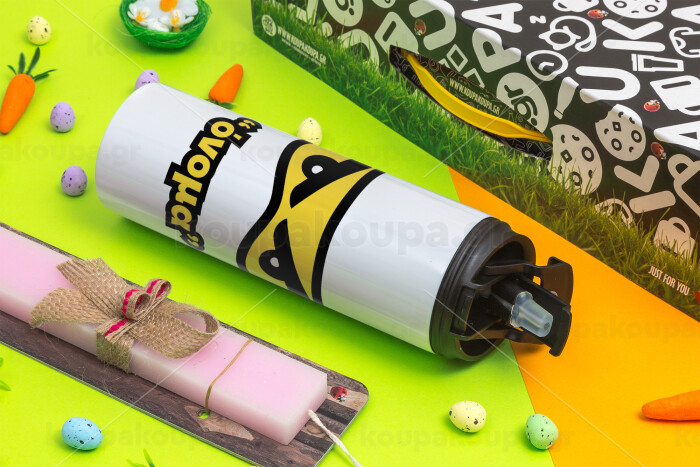 Ninja Eyes με όνομα, Easter candle,Travel Tumbler 2 Lids, with metal straw & cleaning brush & aromatic flat candle (30cm) (PINK)