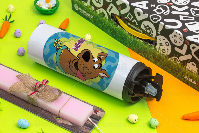 Scooby Doo, Easter candle,Travel Tumbler 2 Lids, with metal straw & cleaning brush & aromatic flat candle (30cm) (PINK)