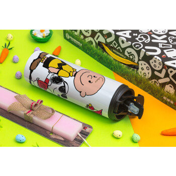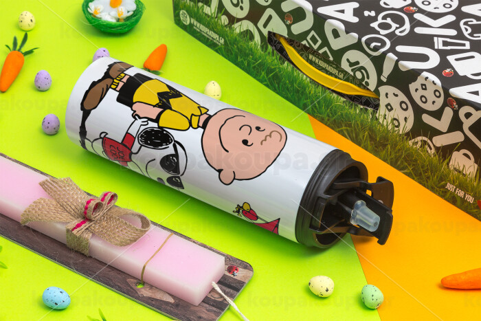 Snoopy & Joe, Easter candle,Travel Tumbler 2 Lids, with metal straw & cleaning brush & aromatic flat candle (30cm) (PINK)