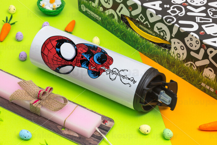 Spiderman upside down, Easter candle,Travel Tumbler 2 Lids, with metal straw & cleaning brush & aromatic flat candle (30cm) (PINK)